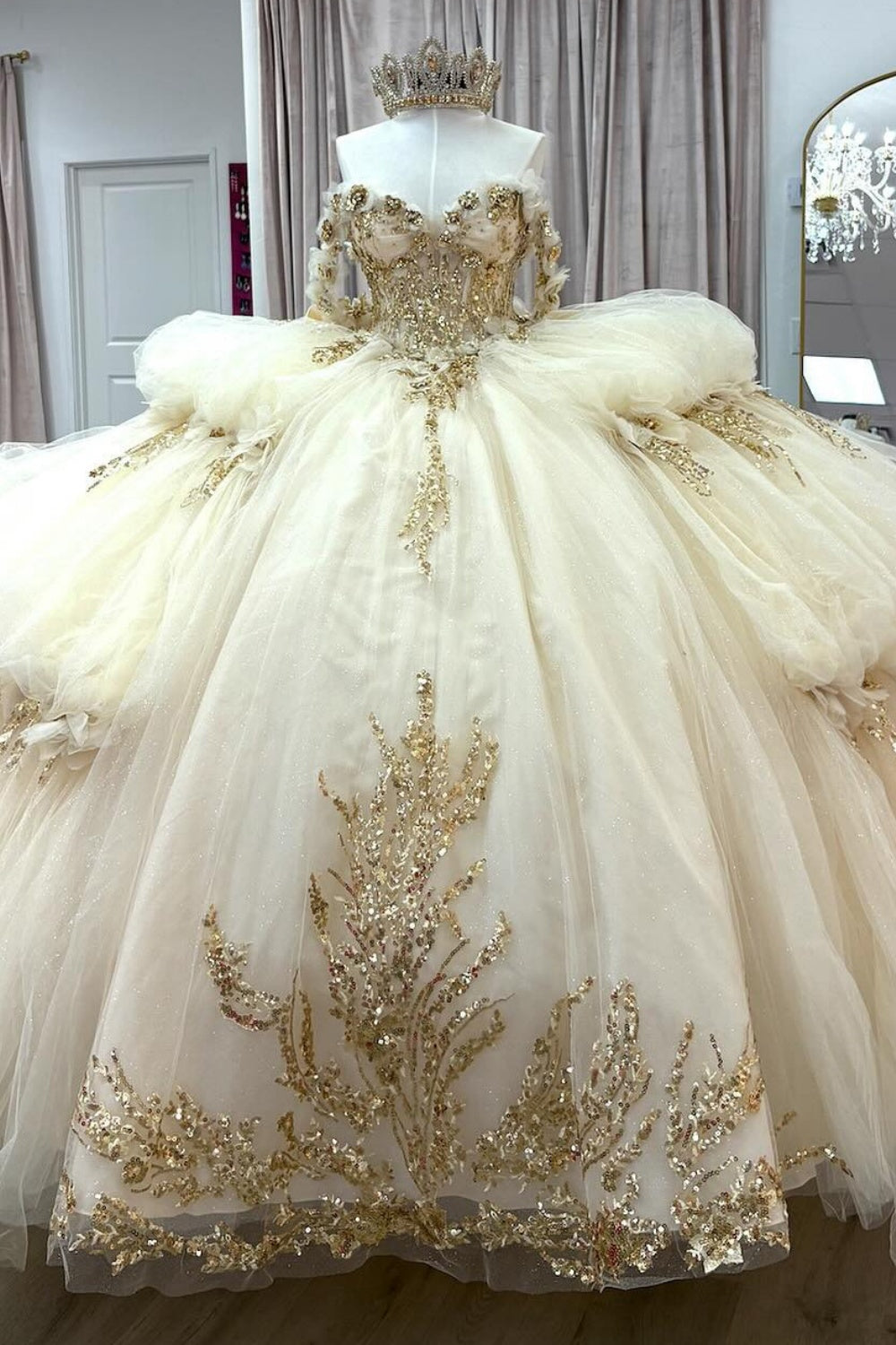 Champagne Quinceanera Dresses Make your grand entrance in a dress as unforgettable...