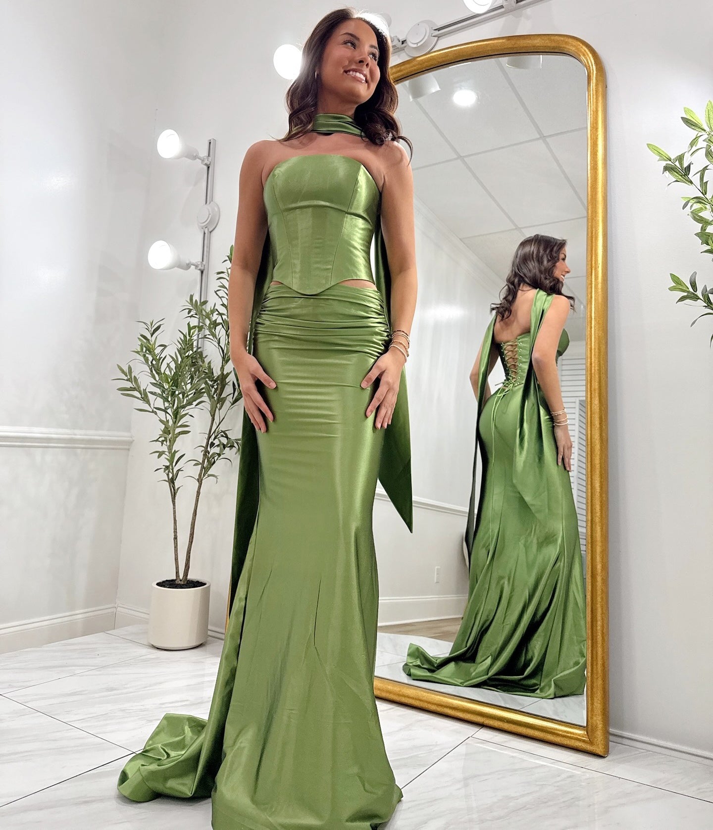 Satin Meerjungfrau Spitze Perlen V-Ausschnitt Schlitz Ballkleider lang für Frauen