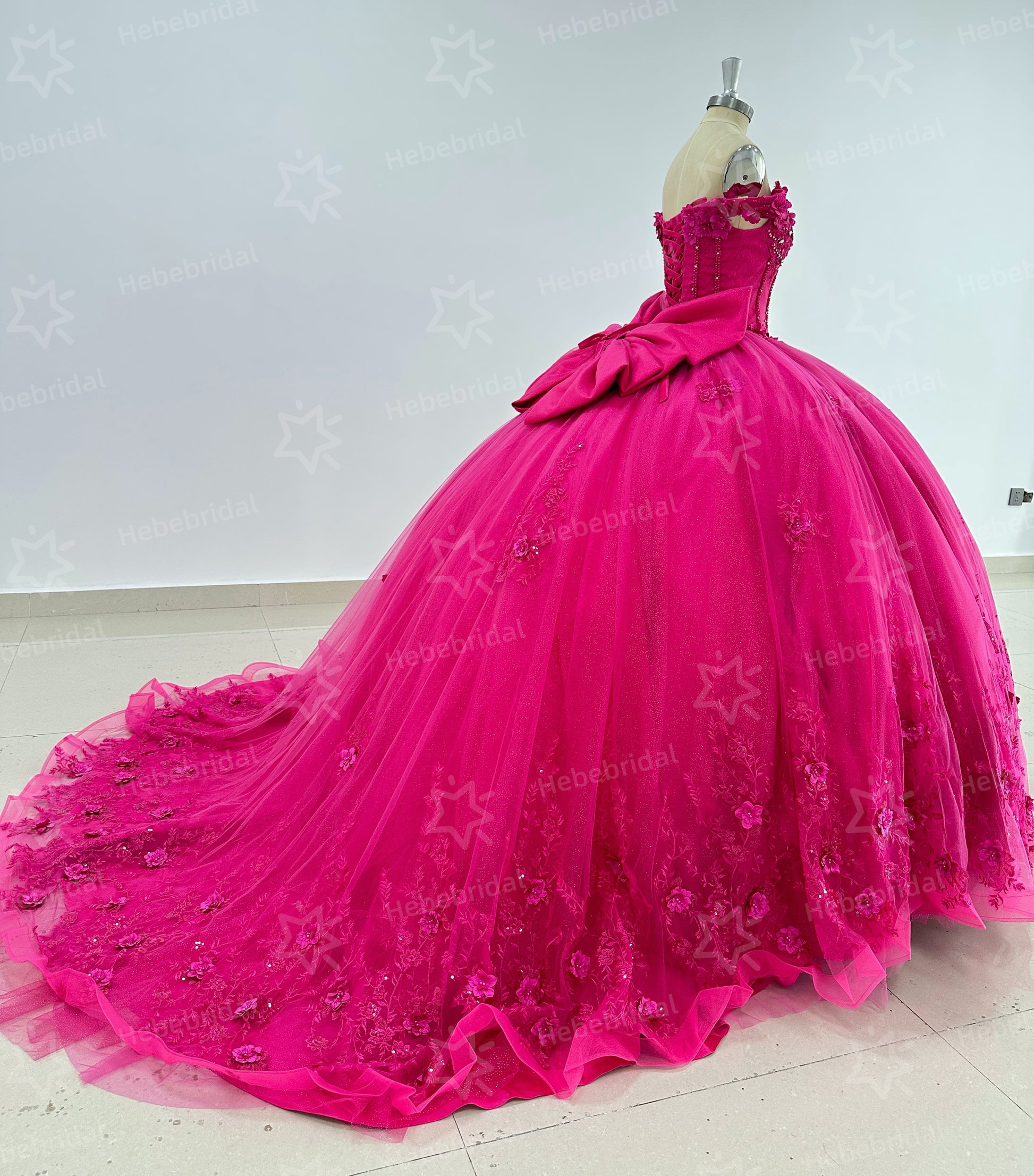 Description:The HE1195 tulle quinceanera dress with ball gown shape and features off shoulder design,adorned with lace sequin and beaded .Perfect for sweet train birthday parties or quinceaneras. Don't settle for ordinary, stand out in this stunning piece.