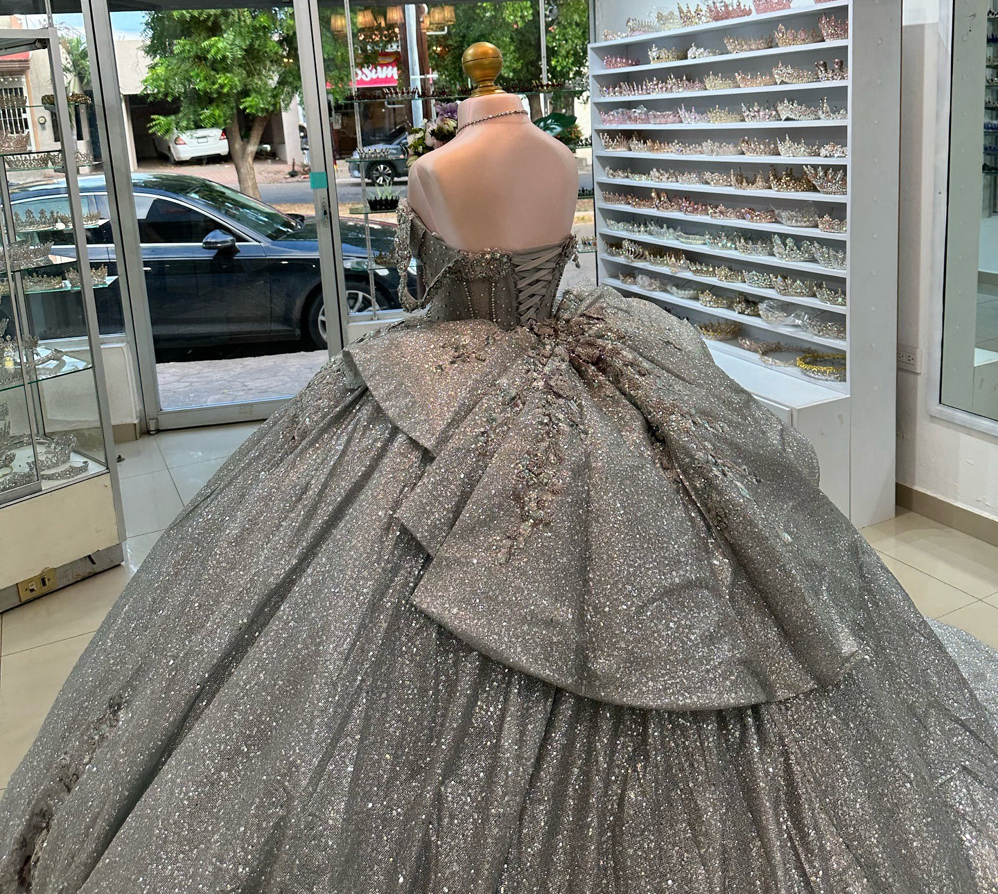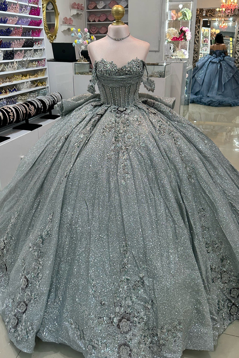 Glittery Tulle Beaded Corset Off Shoulder Quinceanera Dresses for Sweet 16 Party