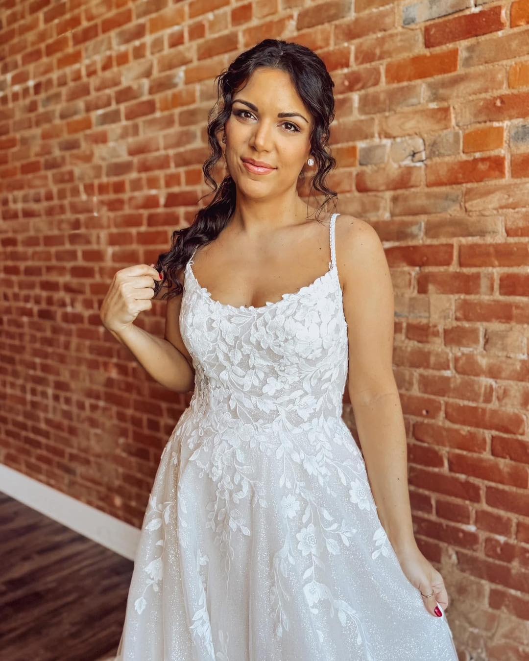 Glittery Tulle Lace Appliqued Beach Wedding Dresses A Line Boho Bride Dress for Women