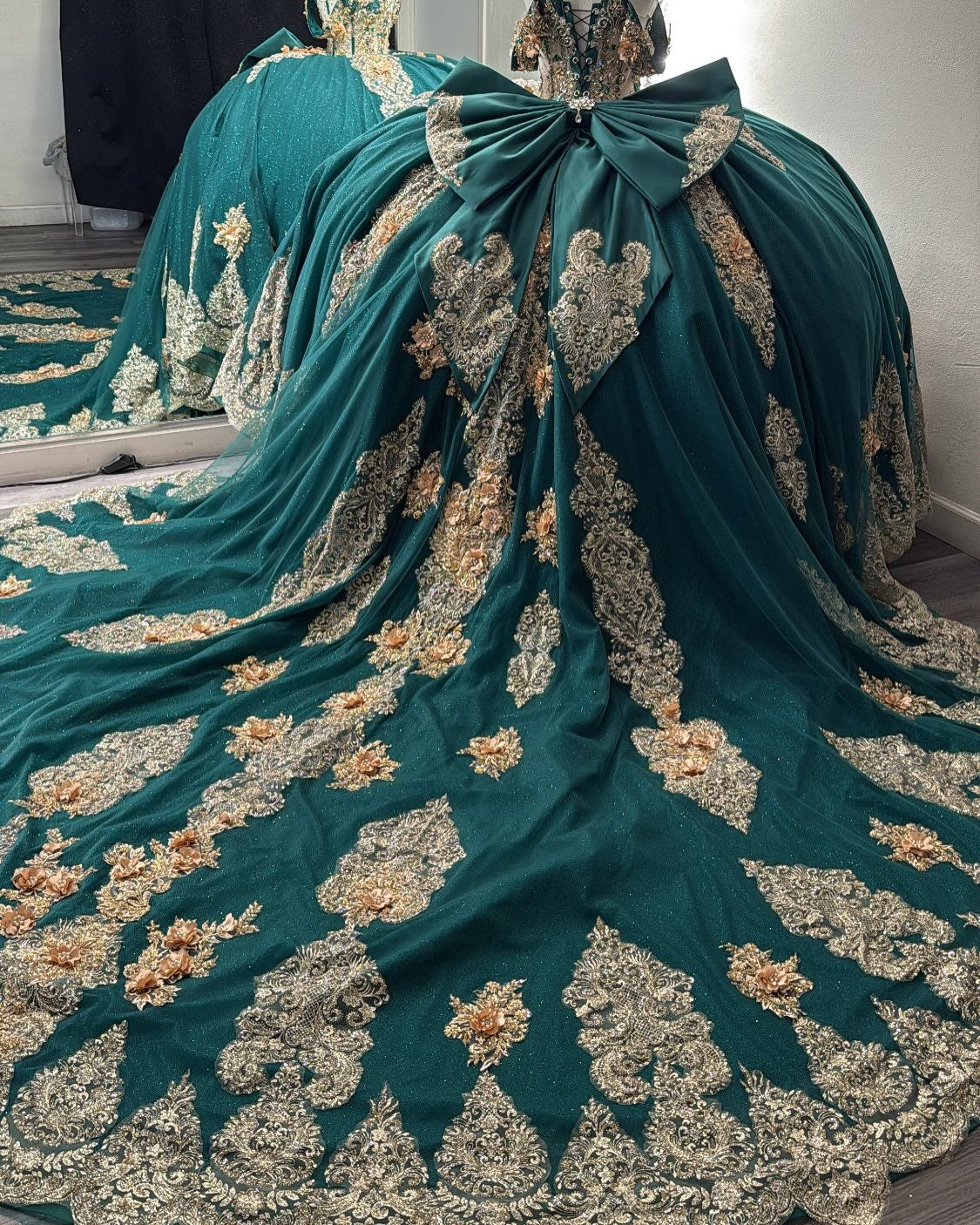 Description:The HE932 tulle quinceanera dress with ball gown shape and features off shoulder design,adorned with lace sequin and beaded .Perfect for sweet train birthday parties or quinceaneras. Don't settle for ordinary, stand out in this stunning piece.