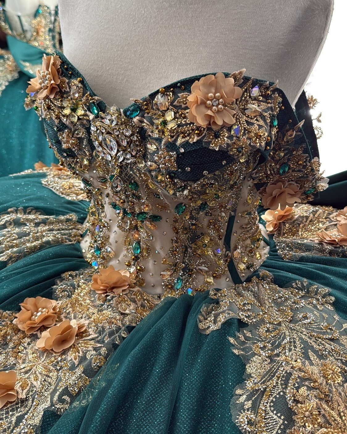 Luxury Tulle Lace Beaded Off Shoulder Princess Quinceanera Dresses for Birthday Party