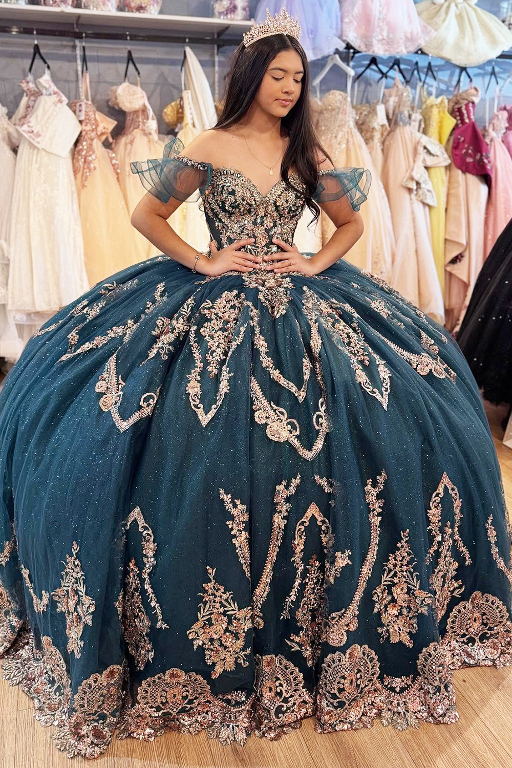 Off Shoulder Princess Tulle Appliqued Beaded Quinceanera Dresses for Sweet 16 Party