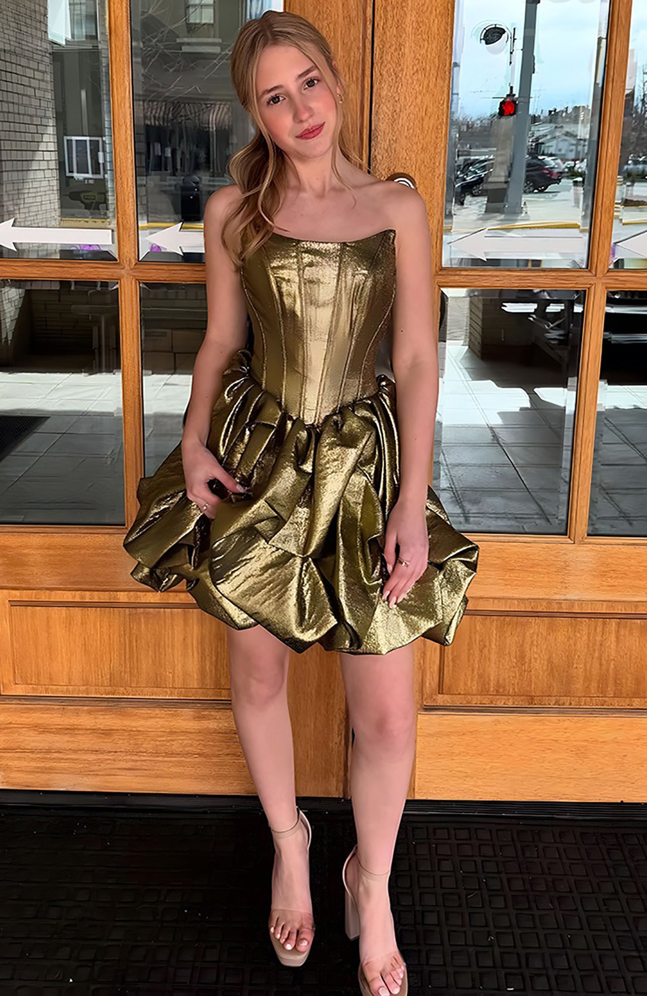 Sparkly Light Blue Short Tiered Corset Homecoming Dress with Lace HE644