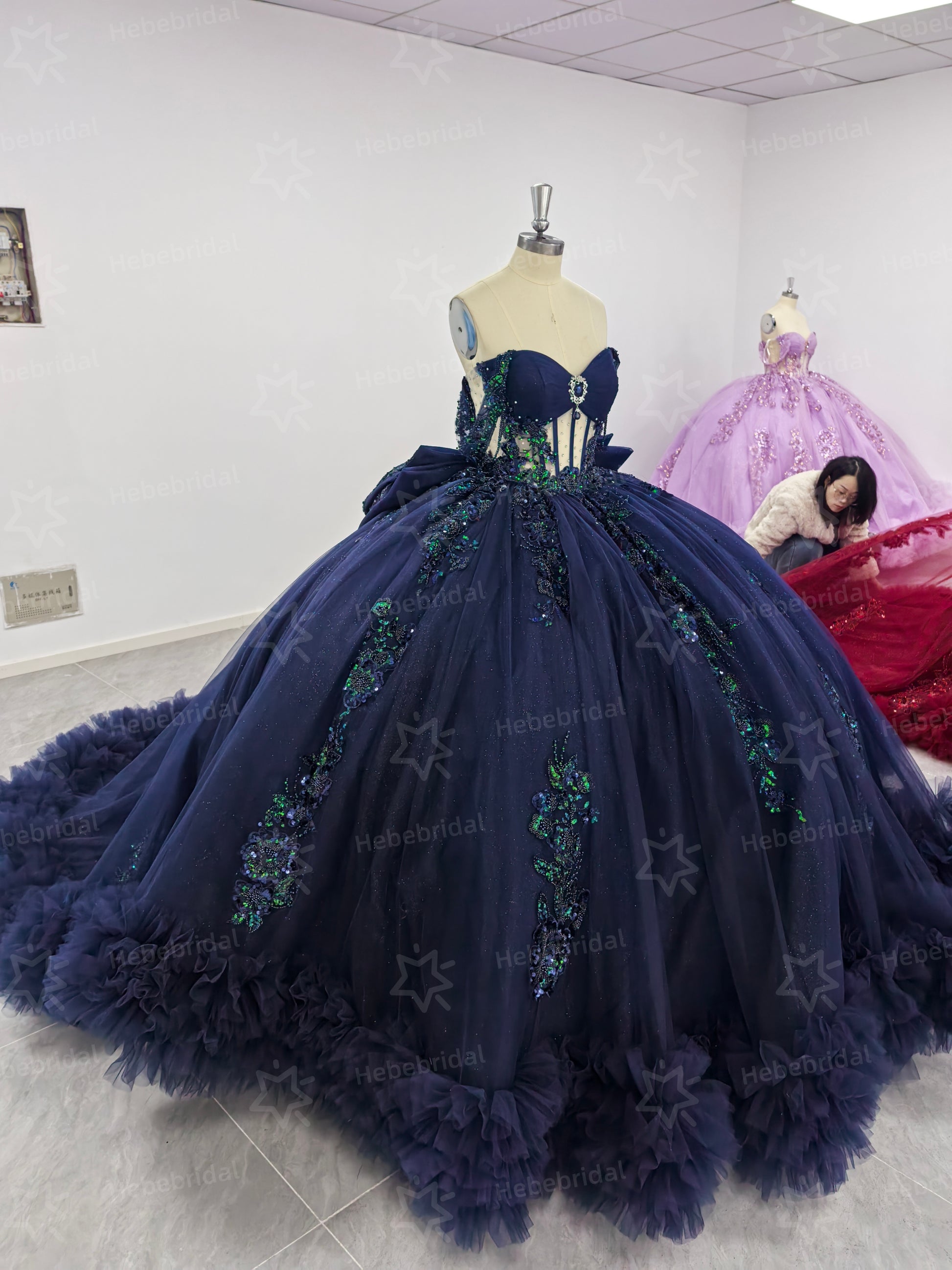 Description:The HE1199 tulle quinceanera dress with ball gown shape and features off shoulder design,adorned with lace sequin and beaded .Perfect for sweet train birthday parties or quinceaneras. Don't settle for ordinary, stand out in this stunning piece.